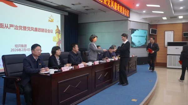2月4日,經(jīng)開集團召開2026年全面從嚴治黨暨黨風廉政建設會議。黨委書記、董事長張姝娜出席會議并講話,市紀委監(jiān)委派駐市財政局紀檢監(jiān)察組組長榮志軍到會指導并講話,總經(jīng)理蘇文昌主持會議。