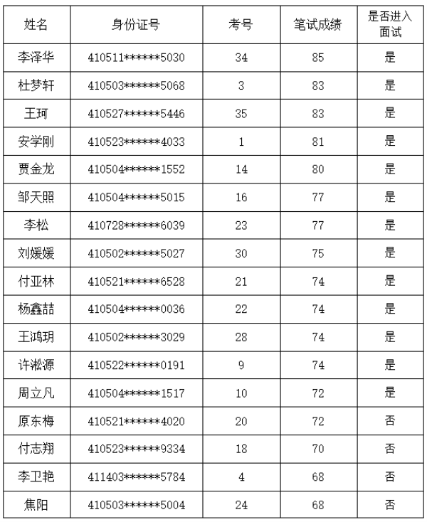 根據(jù)《安陽(yáng)經(jīng)濟(jì)開發(fā)集團(tuán)有限公司下屬子公司工作人員招聘公告》的考試規(guī)則,現(xiàn)將筆試成績(jī)進(jìn)行公示。